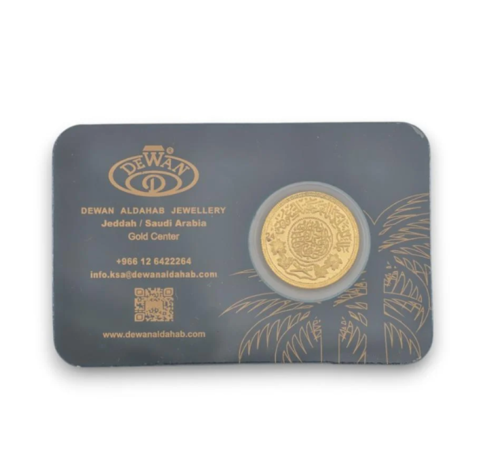 جنيه ذهب فاخر من إنتاج شركة ديوان الذهب، يجسد التراث السعودي الأصيل بنقاء 999.9 ووزن 8 جرام. تصميمه المميز ونقوشه العربية تجعله قطعة فريدة تجمع بين القيمة الاستثمارية والجمال الفني، مثالية لهواة الذهب والمقتنين المميزين.